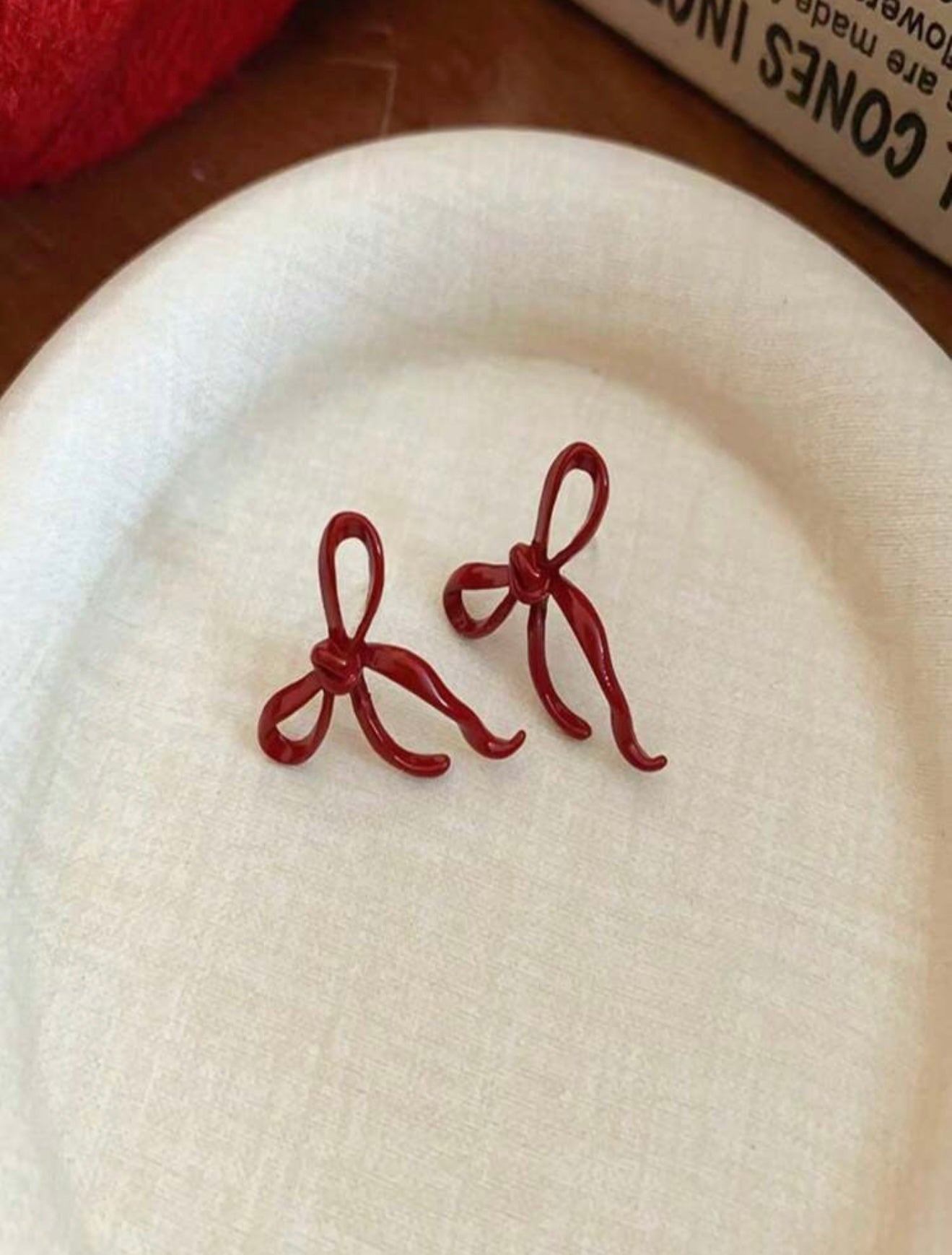 Delicate Burgundy Ribbon Bow Earrings – Tarnish-Resistant Zinc Alloy – Elegant & Feminine Jewellery – Festive Dainty Touch
